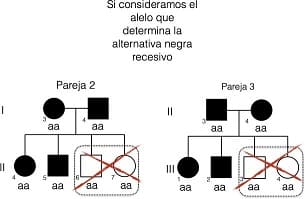 1. Indicate whether the allele that determines the alternative represented in black is dominant or recessive. Give reasons for the answer.
