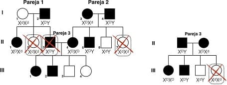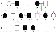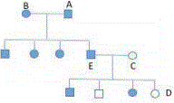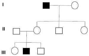 The figure indicates the transmission of a character in a family (men are represented by a square and women by a circle).