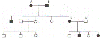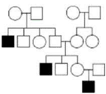 The figure indicates the transmission of a certain anomaly (individuals in black) in a family (men are represented by a square and women by a circle). The abnormality is known to be caused by a single sex-linked gene (located on the X chromosome).