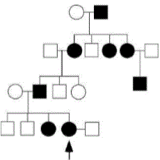 Women are represented by a circle and men by a square. Individuals in black indicate manifestation of the disease.