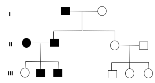 Regarding Mendel's contributions to the study of heredity: The attached diagram shows the transmission of a character (represented by the dark symbols) in a family, produced by a single autosomal gene with two alleles (the squares represent males and the circles women).